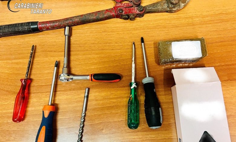La droga sequestrata è stata consegnata al Laboratorio di Analisi Sostanze Stupefacenti del Comando Provinciale di Taranto per ulteriori accertamenti, mentre gli attrezzi da scasso sono stati posti sotto sequestro.