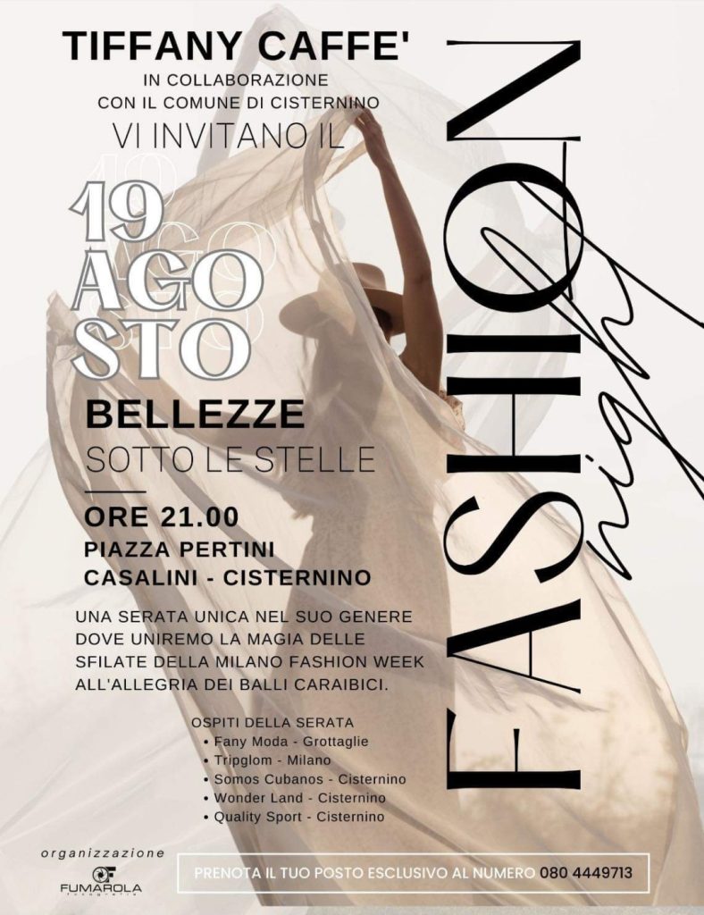 Vuoi vivere una notte indimenticabile all’insegna della bellezza, della moda e del divertimento? Allora non perderti l’evento “Bellezza sotto le stelle” organizzato dal Tiffany Caffè di Casalini, con il patrocinio del comune di Cisternino e la collaborazione di Fumarola Fotografia.