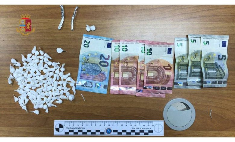 All’interno erano custodite 119 dosi di cocaina del peso complessivo di circa 23 grammi, mentre addosso veniva rinvenuta, dentro il portafoglio, la somma di 75 euro, probabile provento dell’attività illecita.