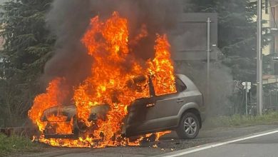 L’auto va fuori strada e prende fuoco ma gli automobilisti rischiano la propria vita e li salvano