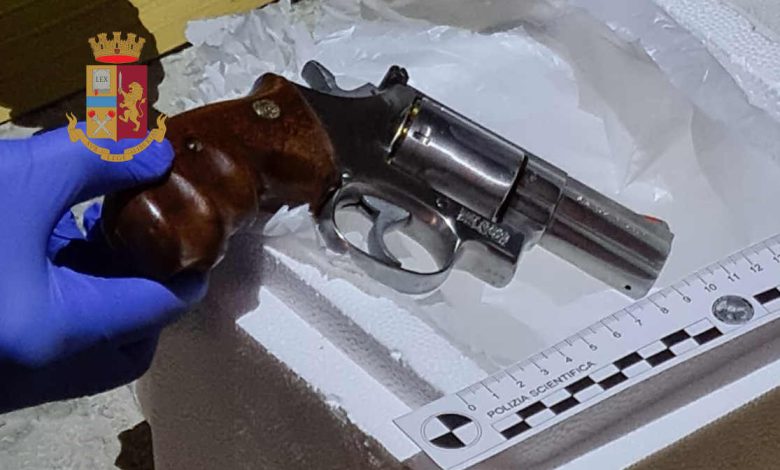 Tra gli oggetti sequestrati spicca una pistola a tamburo, “Smith & Wesson“, calibro 357 magnum, prontamente carica.