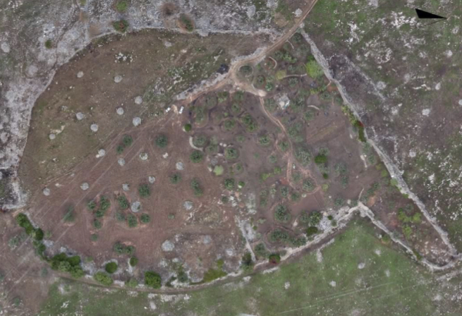 Vista dall’alto del sito archeologico di scavo “Li schiavoni”. Photo by pag Facebook Li schiavoni https://www.facebook.com/LiSchiavoniUnisalento