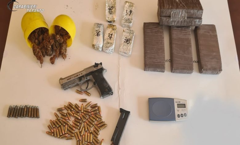 Oltre alla droga, è stata rinvenuta una pistola semiautomatica Beretta modello 92 FS Compact, calibro 9X21, completa di caricatore con 11 proiettili, insieme a numerose munizioni dello stesso calibro e di calibro 38 special.