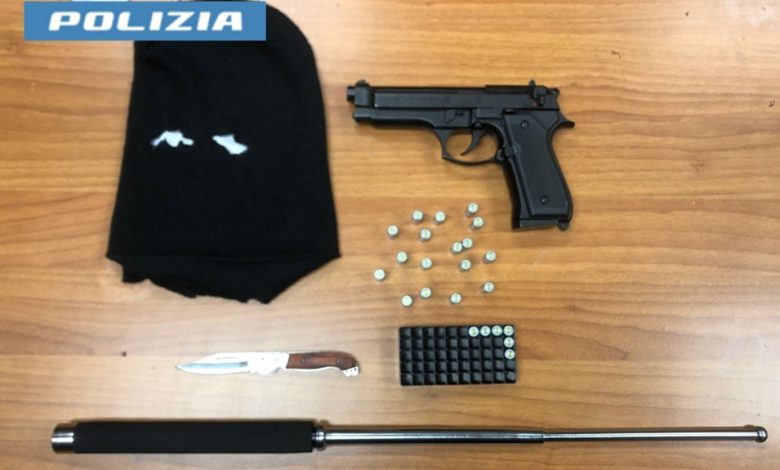 La successiva perquisizione presso l’abitazione del conducente, un 19enne con diversi precedenti penali, ha permesso di recuperare una pistola scacciacani sprovvista del tappo rosso, marca Bruni Mod. 92 Cal. 9 mm, insieme a 26 cartucce argentee calibro 9 mm “pak pobjeda”.