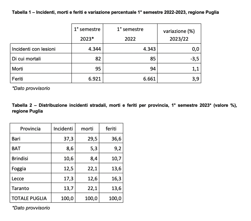 Incidenti stradali in Puglia nel primo semestre 2023: dati stabili ma sfida continua per la Sicurezza
