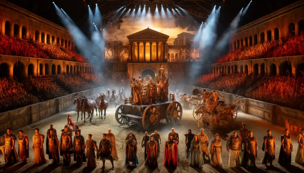Immersi nella maestosa cornice del set cinematografico del film “Ben Hur”, kolossal pluripremiato con 11 Oscar, fedele riproduzione del Circo Massimo, gli spettatori potranno vivere l’ora più emozionante della storia, assistendo a una sfida ricca di passione e azione che celebra l’Impero Romano, attraverso le gesta dei suoi protagonisti.