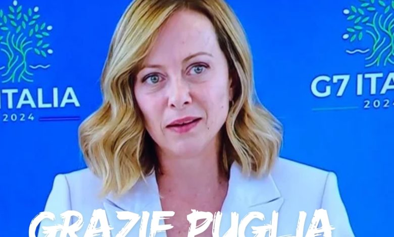 Durante la conferenza stampa di chiusura del G7, la Premier Giorgia Meloni ha espresso il suo sentito ringraziamento alla Puglia e ai pugliesi.