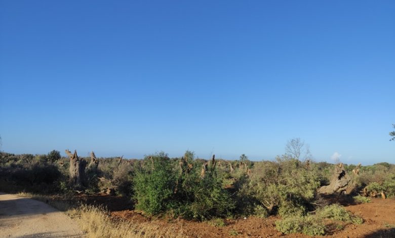Quasi, appunto, perché proprio recentemente un’estensione di circa un ettaro di terreno privato di queste piante è stata eradicata, per volontà dei proprietari i quali, ritenendo di poter fare affidamento per l’eradicazione alla normativa regionale in materia, che autorizza ed anzi incentiva a rimuovere gli alberi secchi a causa della batteriosi, anche al fine di contrastarne l’ulteriore espansione, hanno fatto eradicare gli alberi di questa proprietà, senza tuttavia chiederne l’autorizzazione al Consorzio di gestione dell’area protetta di Torre Guaceto, sotto la cui giurisdizione il terreno ricade.