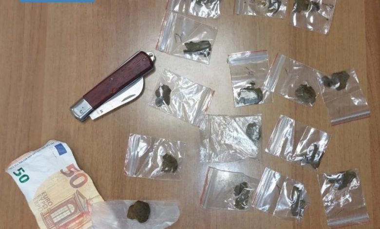 Sedicenne di Gallipoli fermato in flagranza di reato con hashish e un coltello a scatto. Durante un controllo della Polizia in piazza Carducci, il giovane è stato notato mentre cercava di nascondere qualcosa tra i suoi indumenti. Gli agenti hanno scoperto 15 involucri di hashish, per un totale di 25 grammi, e un coltello di 19 cm.