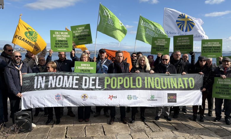 A Taranto, le bonifiche del Sito di Interesse Nazionale (SIN) procedono a rilento, lasciando irrisolte le emergenze ambientali che affliggono il territorio. Questa mattina, davanti al Mar Piccolo, simbolo delle mancate bonifiche, si è tenuto un flash mob promosso da ACLI, Legambiente, Libera e altre associazioni, nell’ambito della campagna nazionale “Ecogiustizia subito: in nome del popolo inquinato”. L’iniziativa ha denunciato i ritardi e chiesto interventi urgenti per risanare l’area, mentre i cittadini continuano a vivere sotto la minaccia di gravi rischi ambientali e sanitari.
