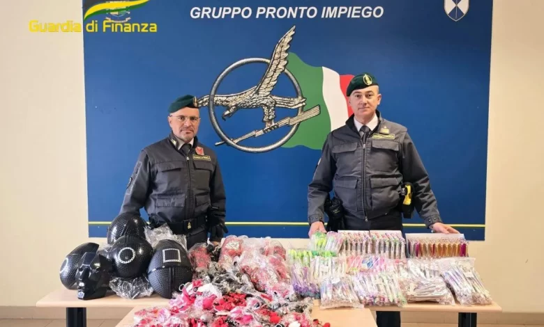 Oltre 17.000 gadget contraffatti raffiguranti simboli della serie Squid Game sono stati sequestrati dalla Guardia di Finanza di Bari. La merce, costituita da portachiavi, penne e maschere, era pronta per essere immessa sul mercato senza rispettare le normative sulla sicurezza e sul diritto d’autore.