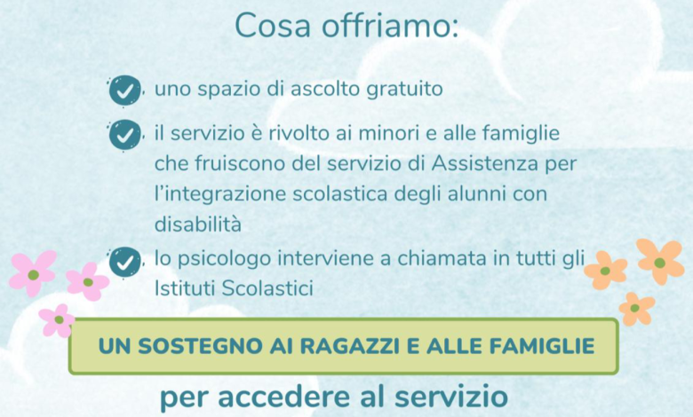 “Il servizio di ascolto e supporto psicologico per gli alunni con disabilità -ha dichiarato l’assessore ai Servizi Sociali- è un’importante iniziativa di sostegno sia per gli studenti che per le loro famiglie. La presenza dello psicologo nelle scuole può davvero fare la differenza, offrendo supporto professionale a chi ne ha bisogno. Il nostro impegno è rivolto a garantire l’inclusione ed il benessere di tutti gli studenti delle scuole elementari e medie, prestando particolare attenzione alle loro necessità individuali. Ed il servizio attivato rappresenta un passo importante in questa direzione. I genitori e gli insegnanti potranno utilizzare il QR-code o appositi indirizzi di posta elettronica per fissare un appuntamento o avere ulteriori dettagli”.
