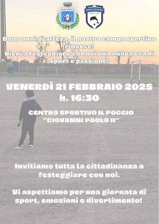 Dopo un lungo periodo di chiusura, il campo sportivo comunale in località “Il Poggio” riapre ufficialmente le porte. L’inaugurazione, prevista per venerdì 21 febbraio alle ore 16.30, segna un momento importante per la comunità e per tutti gli appassionati di sport.