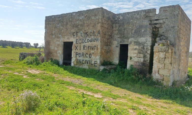 Nelle campagne poste nei pressi di Torchiarolo, paese al confine fra Brindisi e Lecce, passando in bici questa mattina abbiamo trovato quest’opportuno invito a passanti che non passassero di lì per caso, ma con il bagagliaio dell’automobile pieno di cose da buttare.