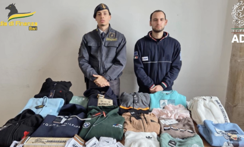 La Guardia di Finanza e l’Agenzia delle Dogane e dei Monopoli hanno intercettato un ingente carico di abbigliamento contraffatto al porto di Bari. Il sequestro, avvenuto nelle scorse ore, ha coinvolto oltre 80.000 capi di lusso falsificati, tra cui scarpe, borse e accessori recanti i loghi di noti brand come Gucci, Louis Vuitton, Adidas e Prada.