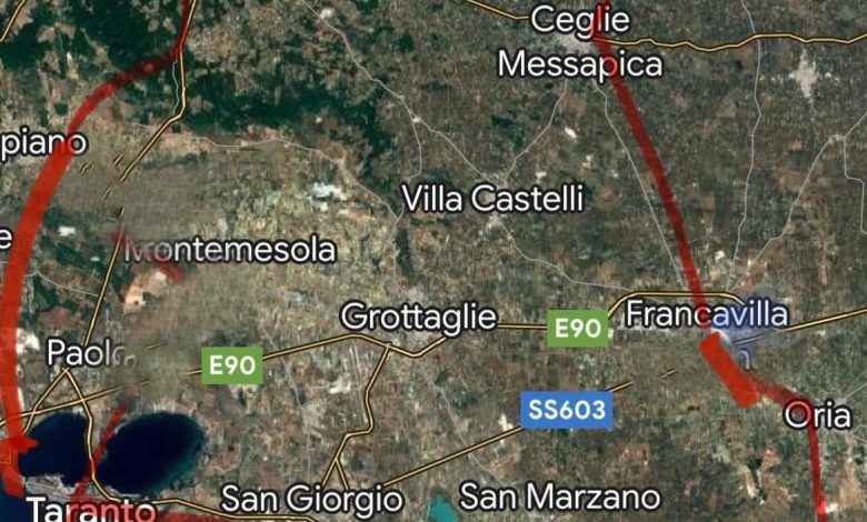 Un percorso che si dirige inizialmente verso il litorale jonico, toccando Manduria, per poi entrare in provincia di Brindisi da Oria, passare da Francavilla e poi salire verso la Valle d’Itria, attraversando Ceglie Messapica e Ostuni, per poi dirigersi dall’interno (senza scendere verso Fasano e scalare la “Gravina” pare di capire) verso Cisternino e quindi toccare Martina Franca.