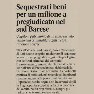 Nelle pertinenze, anche una voliera di 95 mq. Nessun permesso edilizio o paesaggistico era stato rilasciato. Il proprietario, 41 anni, è stato denunciato alla Procura di Lecce per violazioni al Testo Unico dell’Edilizia e al Codice dei Beni Culturali e del Paesaggio. I controlli proseguono nel litorale jonico con il supporto aereo dell’elicottero AW169.