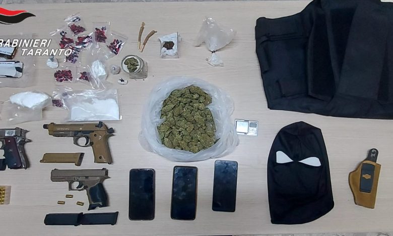 Gli arrestati, già attenzionati per i loro movimenti sospetti, sono stati sorpresi in flagranza e trasferiti nel carcere di Taranto, mentre le armi e le sostanze sono state inviate per analisi. Un’operazione mirata che conferma l’impegno dell’Arma nel contrastare la diffusione della droga e rafforzare la sicurezza nel territorio.
