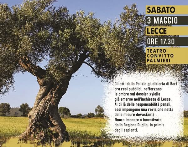 Ne discuteranno professionisti dell’ambito scientifico-fitopatologico e giuridico. Da rilevare come la Provincia di Lecce, che inizialmente aveva patrocinato l’iniziativa, si è poi tirata indietro, giustificando tale ripensamento con le posizioni “equivoche” sostenute dagli organizzatori del convegno, l’associazione “Ulivivo”, che sta organizzando in Puglia una serie di momenti come quello di Lecce per informare le persone su quanto emerso nel corso di alcune indagini condotte dalla Polizia giudiziaria di Bari, oltre che dai riscontri ottenuti dalle “buone pratiche” adottate in agricoltura da chi non ha voluto arrendersi al disfattismo.