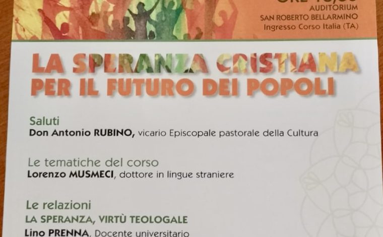 Bellarmino a Taranto, si svolgerà il convegno dal titolo:”LA SPERANZA CRISTIANA