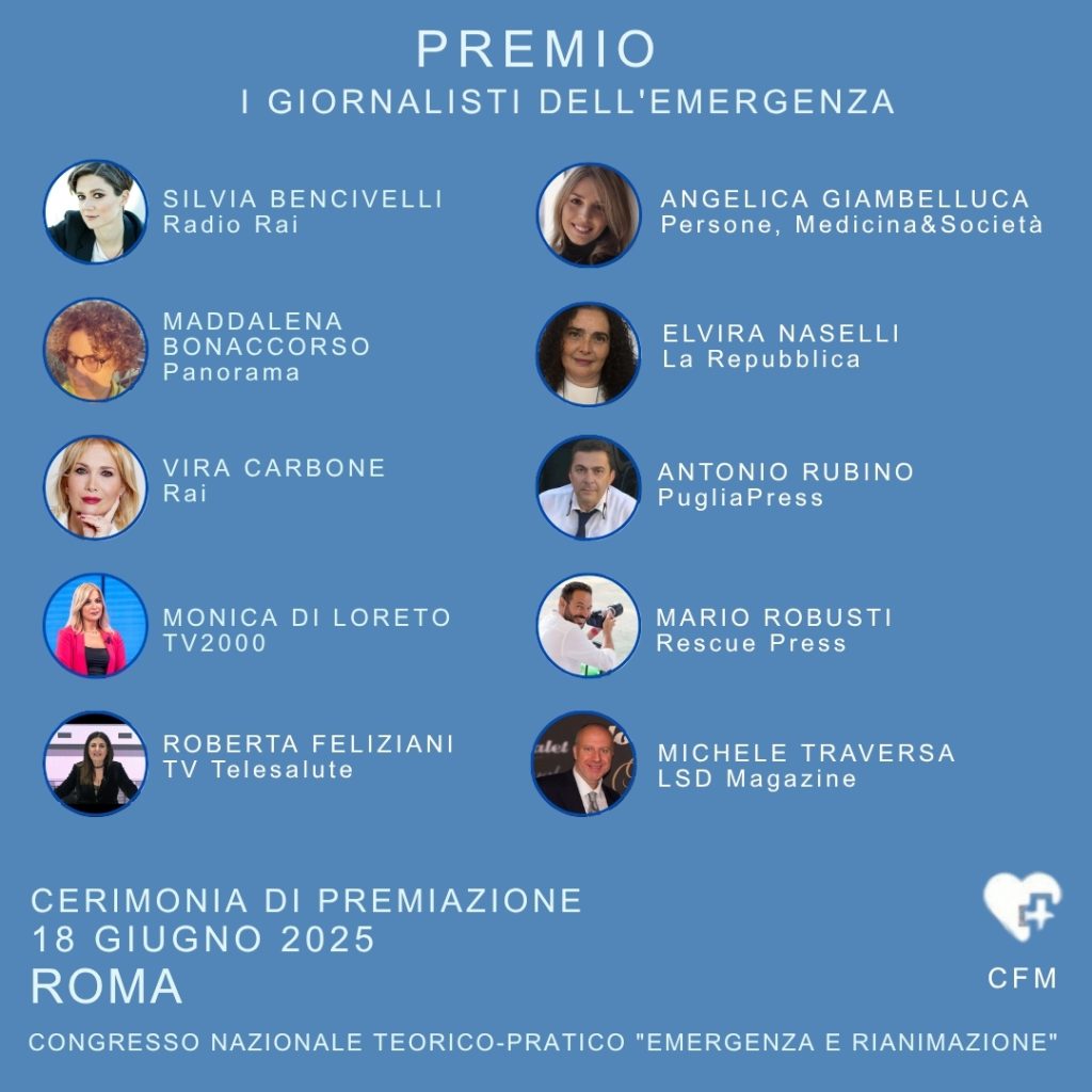 Tra i premiati nella categoria giornalistica figura anche il nostro direttore di Puglia Press, Antonio Rubino, per l’impegno costante nella narrazione dei temi sanitari e per l’attenzione alle storie di medici e pazienti durante la pandemia e oltre.