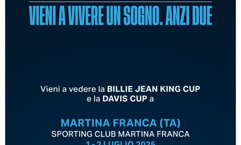 I due trofei che rappresentano il Campionato del mondo di tennis a squadre, la Davis in ambito maschile e la Billie Jean King Cup in quello femminile, entrambi detenuti dall’Italia, a testimonianza ulteriore del suo primato attuale a livello internazionale, saranno ospitati la prossima settimana a Martina Franca, terza città pugliese ad avere questo onore.