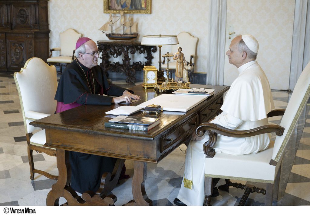 L’invito rivolto al Pontefice assume un valore simbolico e spirituale, rafforzando il legame tra la struttura sanitaria e la Santa Sede. Durante il colloquio, il presidente dell’Ospedale Casa Sollievo ha omaggiato il Santo Padre con una statua bronzea di Padre Pio, una copia della rivista dedicata all’elezione di Papa Leone XIV e la pubblicazione “Padre Pio e la sua Opera”.