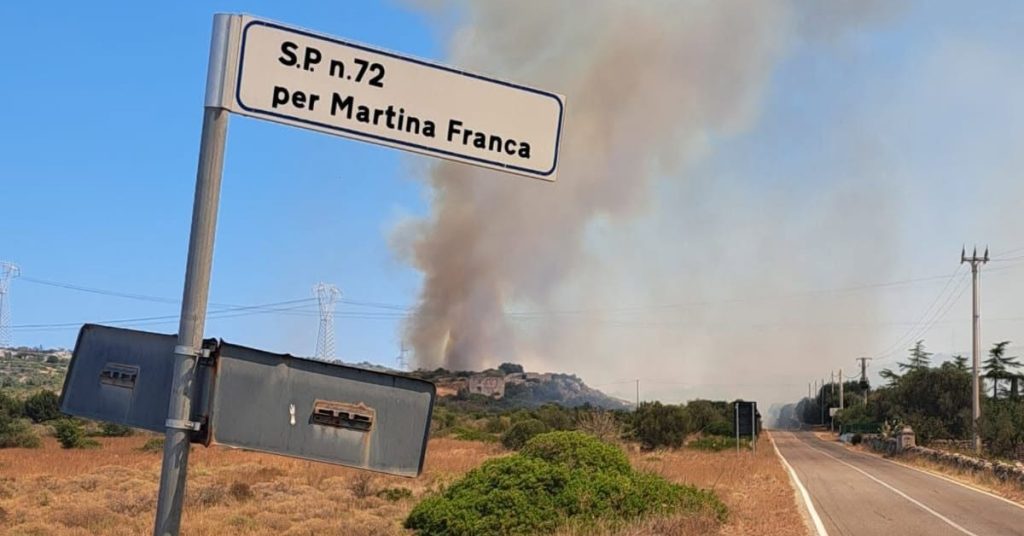 Fin dal primo mattino la zona collinare che da Grottaglie sale in direzione della frazione di Specchia Tarantina, piena di macchia mediterranea e pini, è stata interessata da alcuni focolai propagatisi velocemente in virtù del forte vento di Maestrale che continua a interessare la Puglia meridionale.