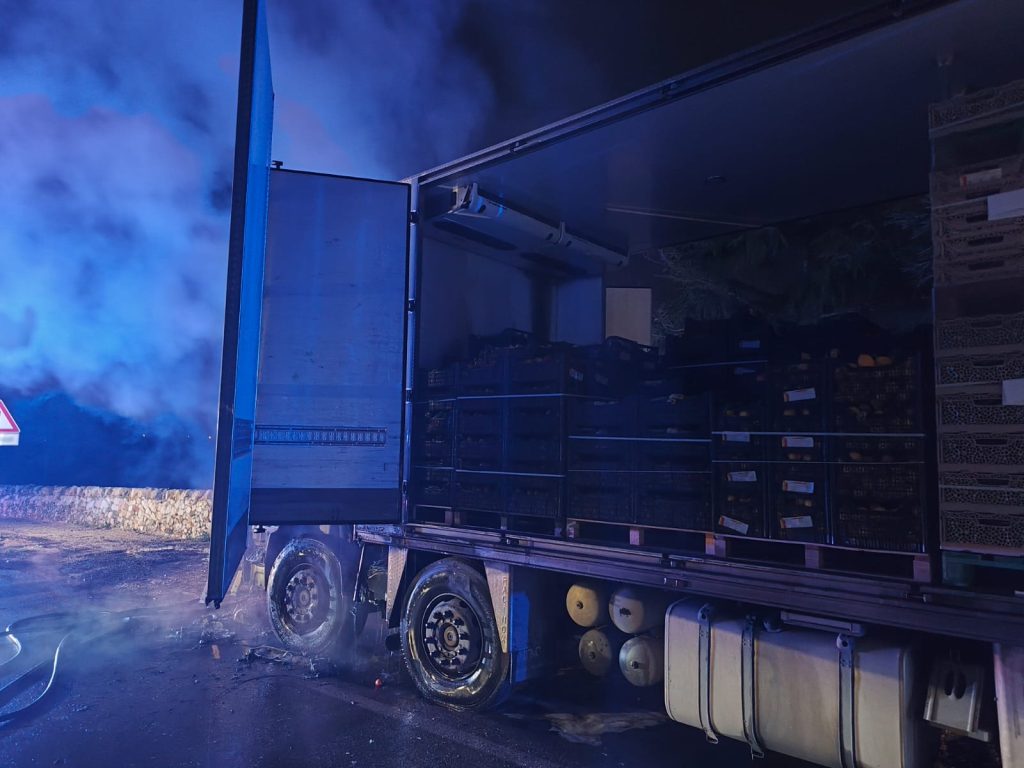 L’autocarro, diretto verso Fasano, trasportava un carico di ortofrutta. Le fiamme si sono sviluppate rapidamente, interessando in particolare la cabina del mezzo e rendendo necessario l’immediato intervento dei soccorsi. Il conducente, originario della provincia di Lecce, è riuscito ad allontanarsi dal veicolo senza riportare ferite.