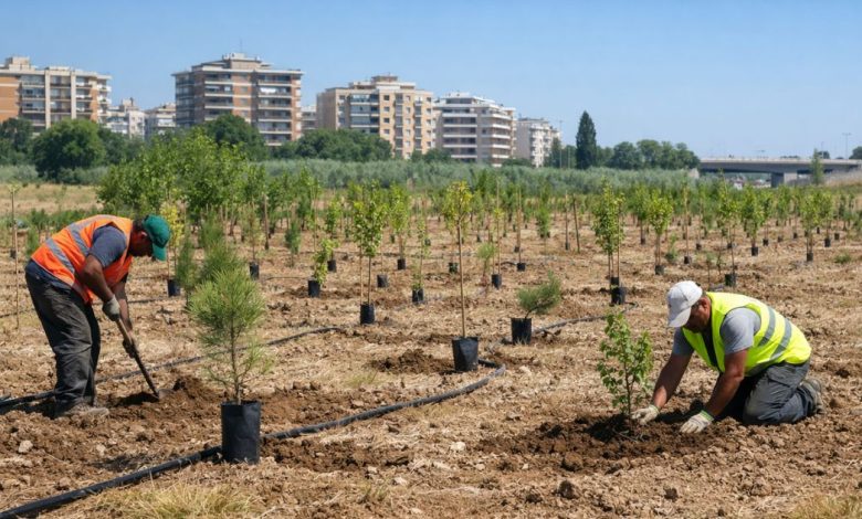 Il progetto prevede la messa a dimora di 180.000 alberi e 66.000 arbusti. Tra le specie scelte figurano leccio, acero, olmo, tamerice, roverella, pino d’Aleppo e carrubo. Le nuove piantumazioni aumenteranno l’assorbimento di CO₂ e contribuiranno a contrastare le isole di calore.