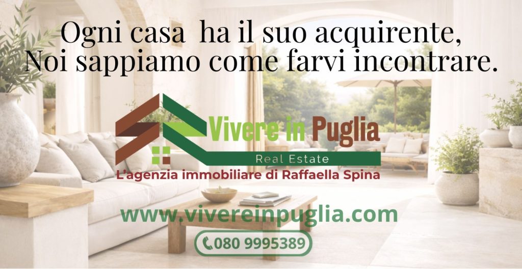 Raffaella Spina è agente immobiliare, giornalista pubblicista, consulente turistica e esperta di public relations, nonché fondatrice di “Vivere in Puglia”, un’agenzia che promuove la Puglia in tutto il mondo con una notevole clientela non solo nazionale, ma anche internazionale. Raffaella utilizza la sua vasta conoscenza del territorio per aiutare chi desidera scoprire, investire, vendere o vivere in Puglia. Attraverso i suoi articoli e la sua attività professionale, trasmette la bellezza e l’unicità della sua regione