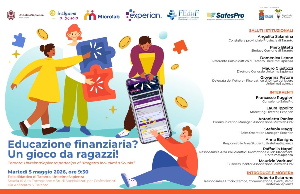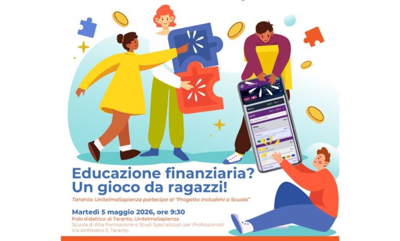 Il progetto Includimi a Scuola arriva a Taranto con un incontro dedicato agli studenti del territorio. L’appuntamento è fissato per martedì 5 maggio 2026, alle 9, nell’auditorium di SafesPro, in via Anfiteatro 5, sede del polo universitario telematico UnitelmaSapienza.