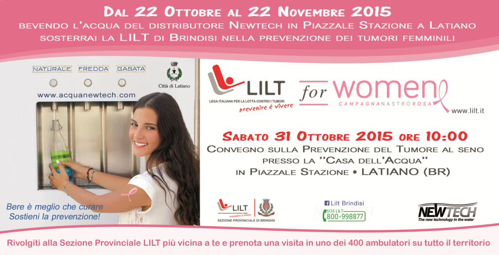 Sabato 31 Ottobre dalle ore 10:00 alle ore 12:00 presso la “Casa dell’Acqua” in Piazzale Stazione a Latiano, avrà sede il Convegno sulla Prevenzione del Tumore al Seno a sostegno della campagna Nastro Rosa LILT (Lega Italiana per la Lotta contro i Tumori), giunta quest’anno alla sua XXIII edizione. L’iniziativa promossa da Newtech Srl e dalla […]