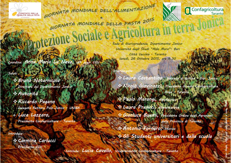 Taranto – Il prossimo 26 ottobre evento dedicato alla Giornata mondiale dell’alimentazione 2015
