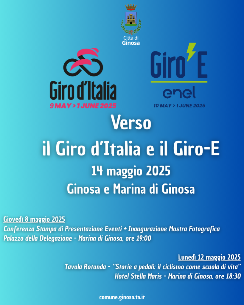 Una settimana all’approdo del Giro d’Italia in Puglia: le iniziative in programma a Ginosa