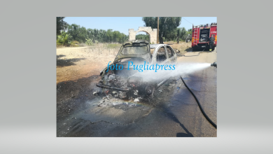 Avetrana: auto distrutta dalle fiamme sulla provinciale per Salice
