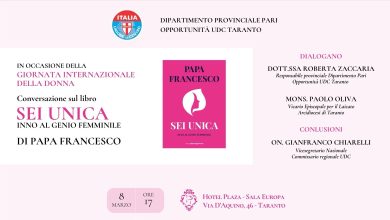 Il dipartimento provinciale Pari opportunità UDC di Taranto, in occasione della Giornata internazionale della donna, organizza l’evento “Sei Unica” conversazione…