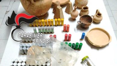 Mesagne (BR): Detenuto agli arresti domiciliari trovato in possesso di munizioni, reperti archeologici e stupefacenti, denunciato all’A.G. e segnalato al Prefetto