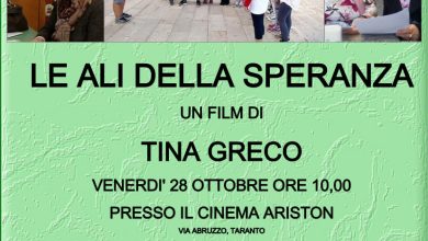 Venerdì 28 Ottobre, alle ore 10, presso il Cinema Ariston di Taranto, sarà proiettato il lungometraggio dal titolo “Le Ali…