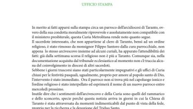 Arriva subito la nota stampa della curia di Taranto in merito all’articolo ” Taranto, preti a luci rosse. Orge e…