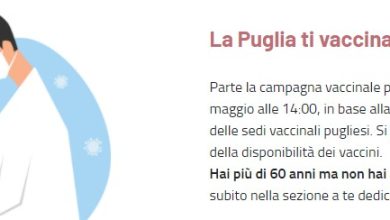 Vi riportiamo il comunicato inviato dalla Regione Puglia Prosegue l’apertura delle prenotazioni della vaccinazione anti-covid per i cittadini dei età under…