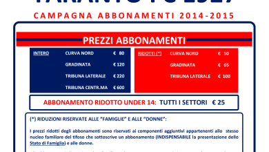 Come promesso dal presidente del Taranto, Domenico Campitiello, da domani sarà riaperta la campagna abbonamenti con prezzi sensibilmente ridotti grazie…