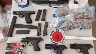 Giovane corriere di armi e droga arrestato a Bari: cinque pistole, munizioni, esplosivi e sostanze stupefacenti trovati. Indagini in corso.
