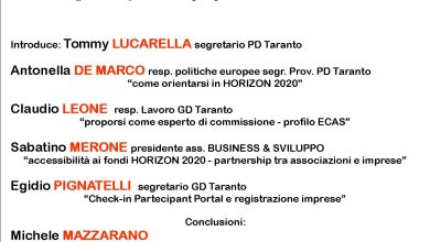 I giovani democratici di Taranto invitano la cittadinanza all’iniziativa “EUROPA A PORTATA DI CLICK”, in cui saranno illustrate tutte le…