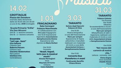 TARANTO – “Dono…in un Mare di Musica”è il titolo del progetto realizzato dalle Associazioni ArmoniE Taranto, Anteas Grottaglie, AVIS Grottaglie,…