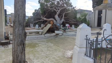 Grande albero di pino cade sul campo di sepoltura dei bambini nel cimitero di Brindisi