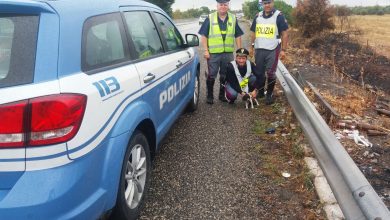 Taranto – Tremante ed impaurito: cucciolo legato al guardrail, salvato dalla Polizia Stradale | FOTO