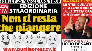 CLICCA QUI PER LA DIRETTA ORE 18:00 PUGLIAPRESS TV Redazione PugliapressPugliaPress Quotidiano cartaceo e online dal 7 dicembre del 2000…