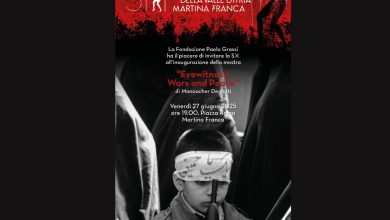 Domani, venerdì 27 giugno alle ore 19.30, si terrà l’inaugurazione della mostra fotografica a Martina Franca “Eyewitness: guerre e pace”.…