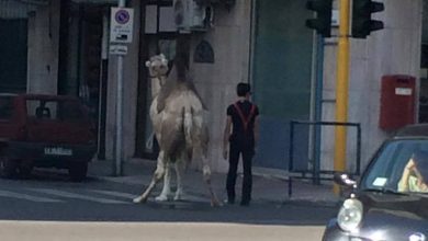 C’è chi porta a spasso il cane e chi… un dromedario. Le foto dell’animale e del suo padrone sono subito…
